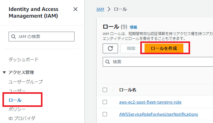 a)IAMロール準備