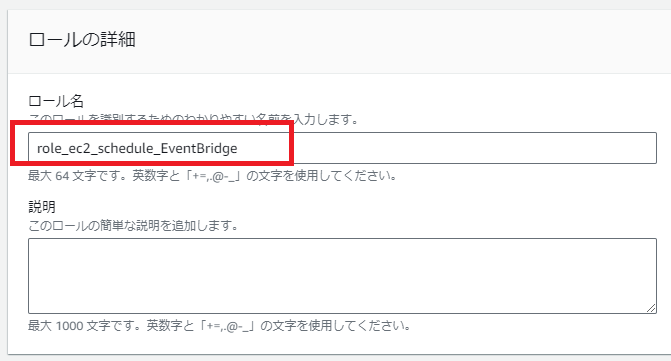 ロールの詳細でロール名を指定します。