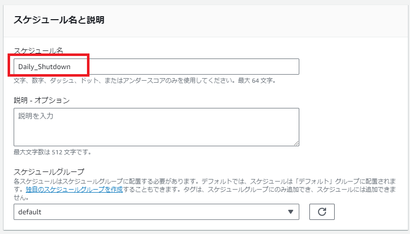 スケジュール名の設定をします。