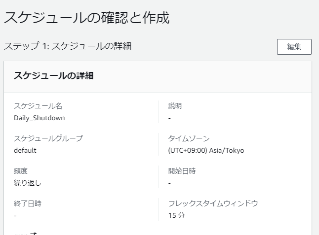 これで自動停止/起動をするためのIAMロールが用意できました。このIAMロールを使って、スケジュールを設定していきます。