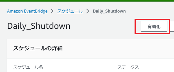 スケジュールを有効化します。