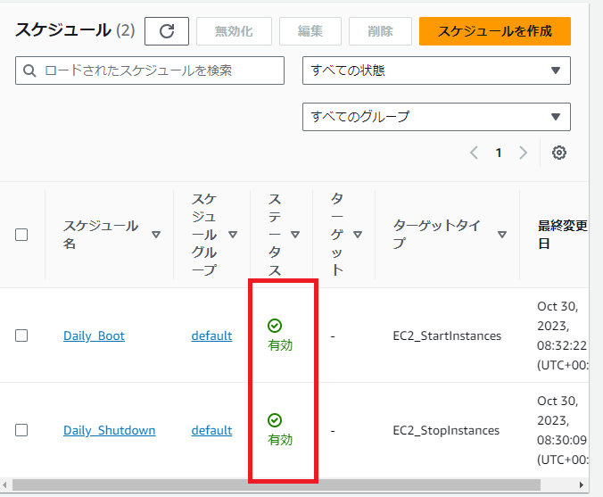 あとは指定時刻にEC2インスタンスが停止/起動することを確認できればOKです。