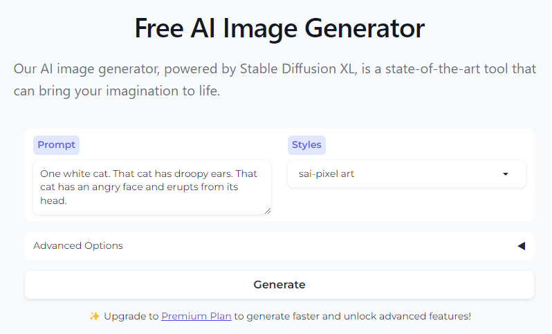 「Prompt」には先ほどの英文を入力し、「Styles」は「sai-pixcel art」を選択し、「Generate」を実行します。