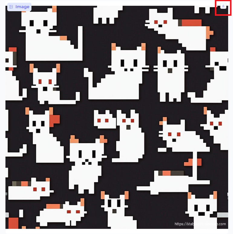 しばらく待つと、画像が生成されます。右上にダウンロードボタンがありますので、そこからダウンロードすることができます。